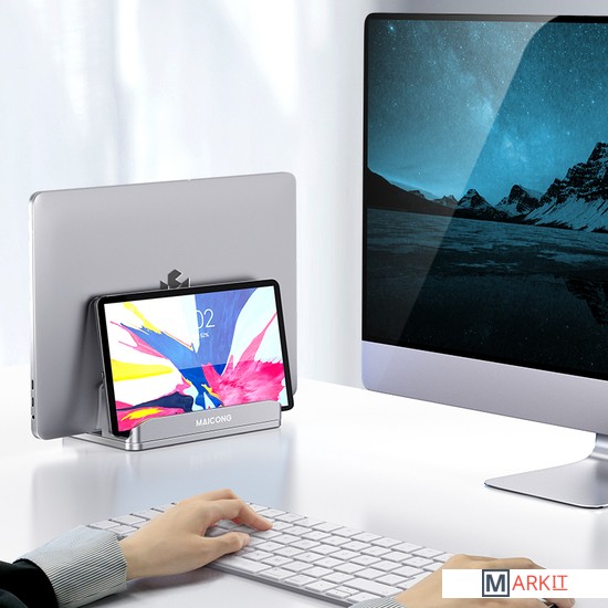MAICONG LS818 Dual - это подставка под телефон, планшет и ноутбук, произведенная из высококачественного алюминия, подходит под все модели устройств, защищает с помощью силиконового покрытия, регулируется по ширине.