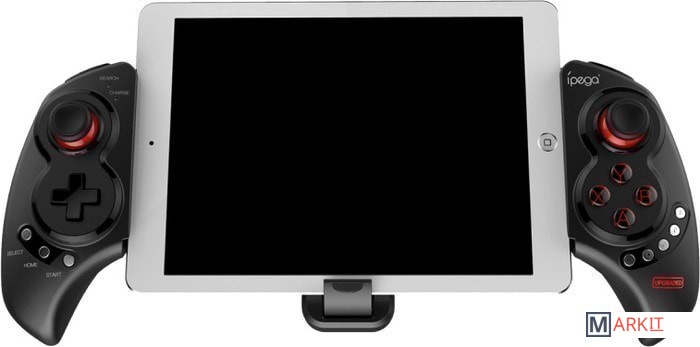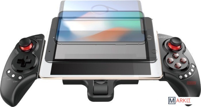 Bluetooth-контроллер с функцией контроля мультимедиа и возможностью установки не только смартфона но и планшета до 28 см. Оборудован восемью дополнительными кнопками. Время работы составляет 12 часов. Время зарядки - 3 часа.