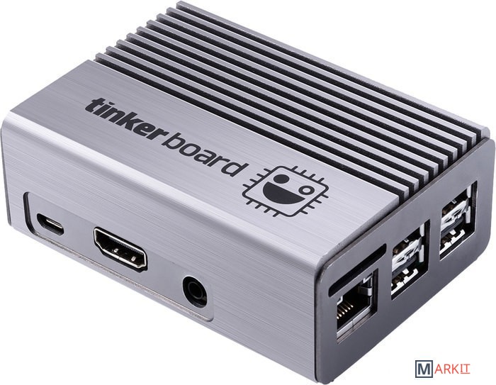Алюминиевый безвентиляторный корпус-радиатор для одноплатных компьютеров ASUS Tinker Board и Tinker Board S. Установка компьютера осуществляется с помощью одного винта с накатанной головкой, который можно закрутить пальцами без использования каких-либо инструментов. В корпусе имеются порты для подключения к компьютеру Tinker Board различной периферии (камера, DSI-панель и т.д.).