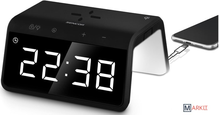Markit » Электронные и радиочасы » Настольные часы с беспроводной зарядкой Sencor SDC 7900 Qi