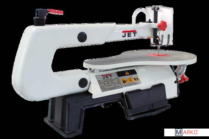 Jet JSS-16A – любительский станок для выпиливания сложных радиусов в не слишком крупных заготовках из древесины, ДСП, ДВП, фанеры или пластмассы. Модель представляет собой улучшенную модификацию хорошо известного лобзикового станка Jet JSS-16 и имеет ряд интересных конструктивных особенностей, выгодно отличающих ее от аналогов других марок. Прежде всего, это универсальность в отношении используемых полотен: можно устанавливать пилки как со штифтовым креплением, так и без него. Важно отметить удобное верхнее расположение рычага натяжения полотна. Новое усовершенствование в конструкции – возможность изменить ориентацию плоскости распила: вдоль или поперек продольной оси станка, смотря как удобнее или привычнее оператору.Частота ходов пилки: 550-1600 ход/мин
