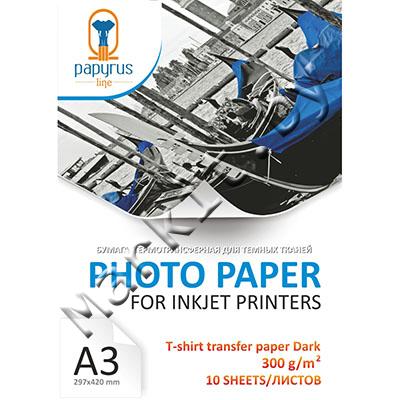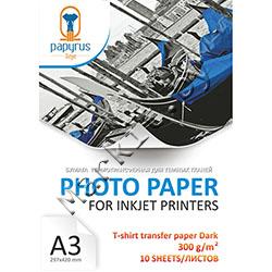 Термотрансферная бумага PAPYRUS серия T-SHIRT TRANSFER PAPER DARK, A3, 300 г/м2, 10 листов, односторонняя, для струйной печати (BN05528) Код: 16753