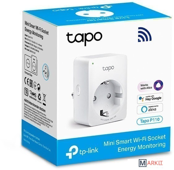 Отслеживайте энергопотребление прямо с телефонаИспользуйте мобильное приложение Tapo, чтобы мгновенно включать или выключать подключённые устройства — где бы вы ни находились. Сделайте свою жизнь проще и безопаснее.Отслеживайте энергопотребление в реальном времени через приложение Tapo. Экономьте с умом, включая бытовую технику во время действия дешёвых тарифов на электроэнергию.Создавайте расписания работы и таймеры на всю неделю. Все подключённые устройства будут автоматически активироваться и отключаться в заданное время, делая жизнь удобнее и энергоэффективнее.Объедините несколько устройств в одну группу, чтобы их можно было вместе включать или выключать одним нажатием.Благодаря небольшому размеру Tapo P110 не загромождает соседние розетки.Нет интернета? Нет электричества? Не переживайте — всё продолжит работать как надо.После восстановления питания розетка Tapo вернётся к одному из состояний.Вы можете делиться правами доступа и управления с членами семьи, экономя время и упрощая использование устройства — особенно для людей в возрасте.Функция «Нет дома» создаёт видимость того, что дома кто-то есть, периодически включая и выключая подключённое устройство (например, лампу).Огнестойкий материал UL94-V0.Защитные шторки уберегут детей.Долгий срок службы и стабильное подключение благодаря нержавеющей стали.Контроль качества CE.Размеры (В × Ш × Д) 51 × 72 × 40 ммМатериал ПоликарбонатМаксимальная нагрузка 3680 Вт, 16 А
